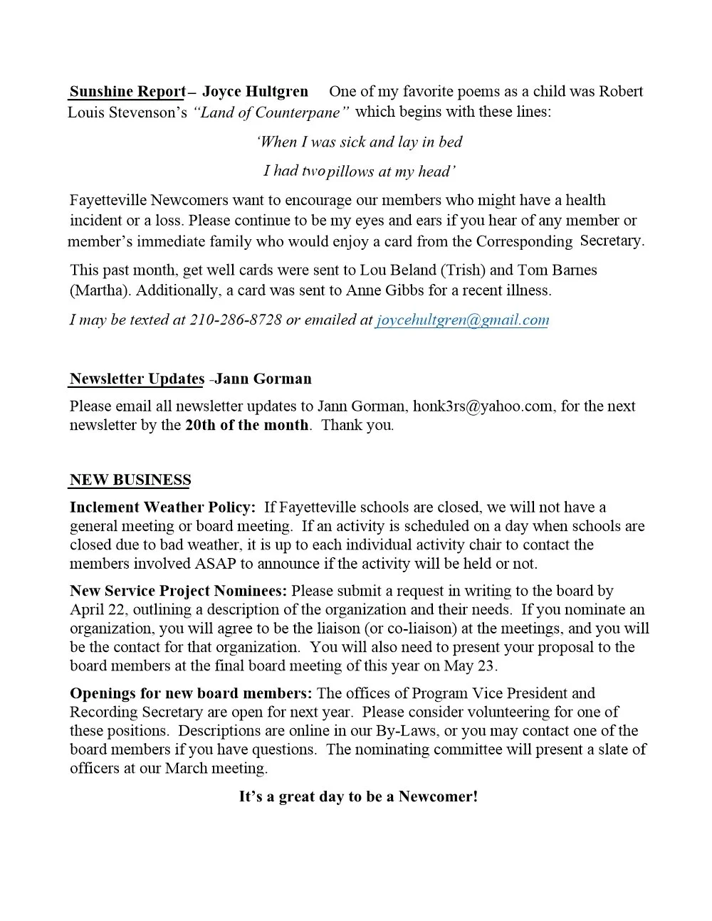 Newsletter - Janurary 2022