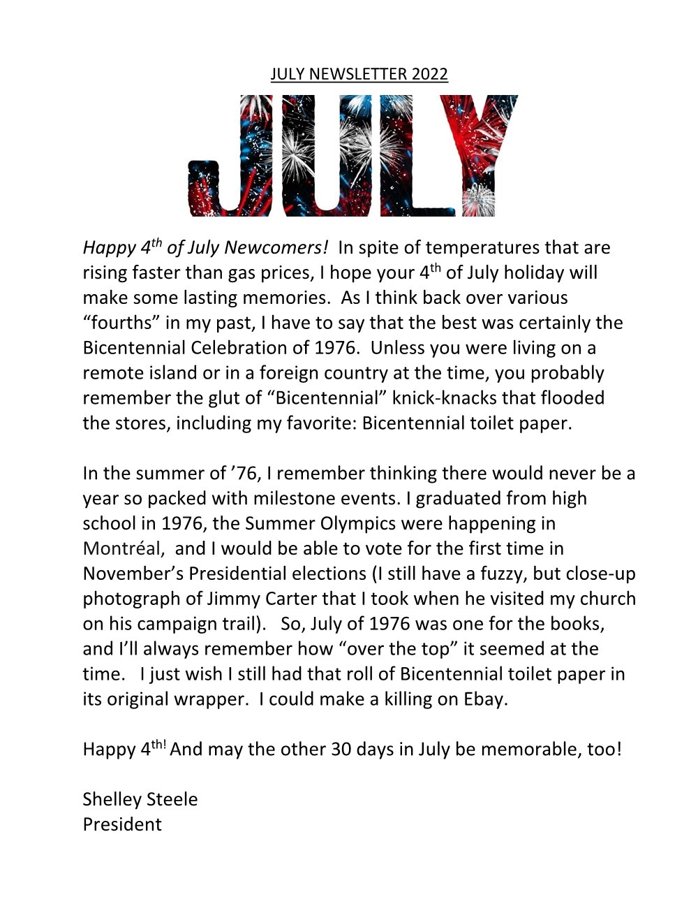Newsletter - July 2022